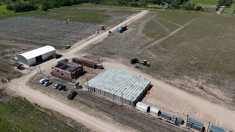 Se trabaja en el armado e instalación de las estructuras fotovoltaicas que sostienen los paneles solares, fijándolos de manera segura a una superficie y orientándolos para maximizar la captación de energía solar. Posteriormente, se colocarán los paneles y luego lo que respecta al tendido de cables y demás instalaciones que permitan la generación de energía.