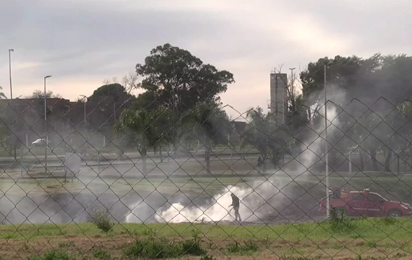 Un incendio registrado desde la noche del domingo alertó a vecinos y autoridades en la zona cercana a la Escuela de Policía en Paraná. Este lunes, los bomberos zapadores trabajaron en el lugar para sofocar el fuego, mientras se investiga el origen del siniestro.