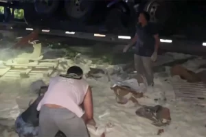 Un camión cargado con bolsas de harina volcó en la ruta nacional 34, a la altura de Totoras, 60 kilómetros al norte de Rosario, y vecinos de esa localidad y la región se agolparon para llevarse la mercadería una vez que fueron autorizados, entrada la noche del lunes, por personal de la aseguradora.
