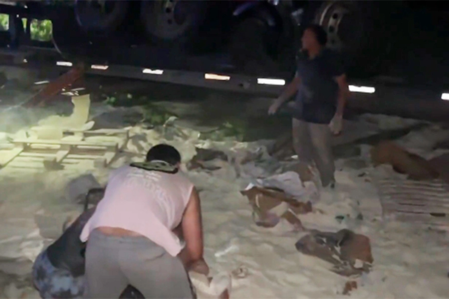 “Nos sobrepasó la cantidad de gente y tuvimos que dejar que se lleve mercadería”, dijo un policía a El Tres. Personal de una aseguradora acudió a la zona y permitió a los vecinos que retiraran parte de la carga.