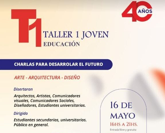 En el marco del 40º aniversario de Taller 1 Joven este viernes 16 de mayo a partir de las 16 hs en el Círculo Médico de Paraná, se realizará la primera jornada de disertaciones a cargo de profesionales de la arquitectura, las artes, la comunicación y el diseño.