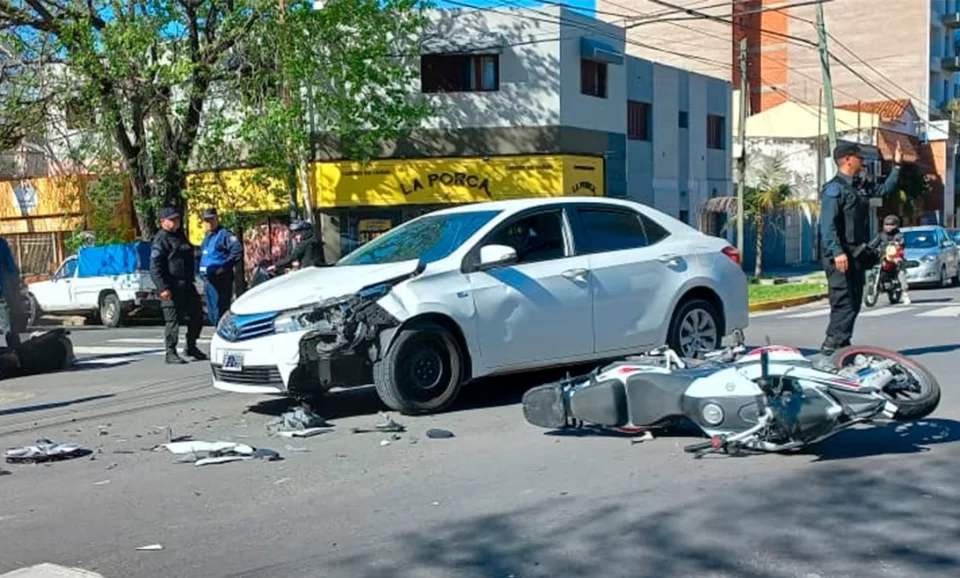 De acuerdo con las primeras informaciones, el auto circulaba por Nogoyá, mientras que la moto lo hacía por Salta. El impacto se produjo en la esquina y el motociclista fue quien se llevó la peor parte.