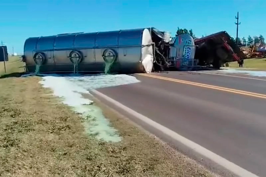 Tras el choque, el camión cisterna quedó volcado sobre la ruta, desparramando el líquido que transportaba. Por este motivo, y mientras se realicen las pericias, el paso vehicular está cortado.