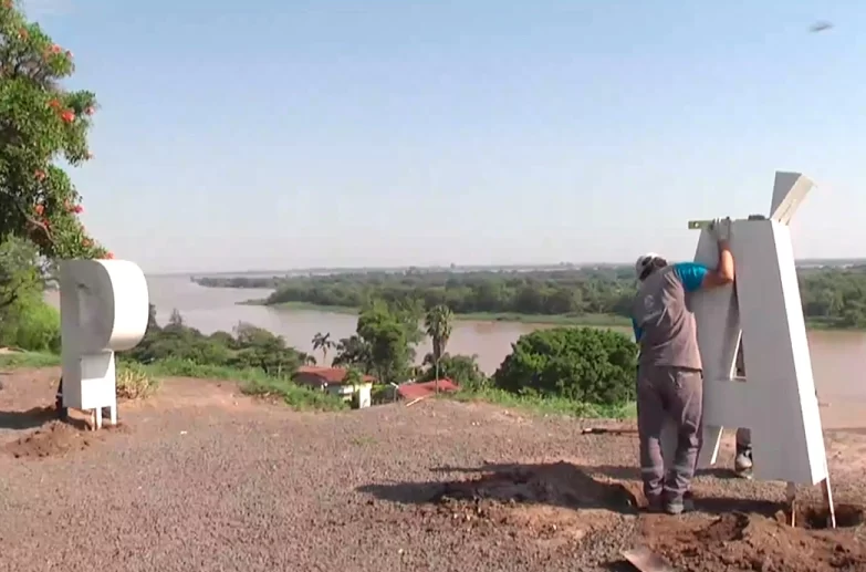 Comenzaron las obras para reinstalar las letras corpóreas de Paraná, en el mirador de la barranca del Patito Sirií.