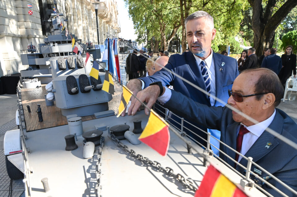 Alberto Cabrera, sobreviviente del hundimiento del Belgrano por parte de las fuerzas británicas en el Atlántico Sur, dijo frente a la réplica del crucero: “Cada vez que veo este buque me trae mucha emoción, pero hay que seguir hacia adelante y decir la verdad sobre lo que pasó. Por eso me esfuerzo a pesar de mi edad, ya tengo 78 años, porque sí o sí las islas Malvinas son argentinas”.