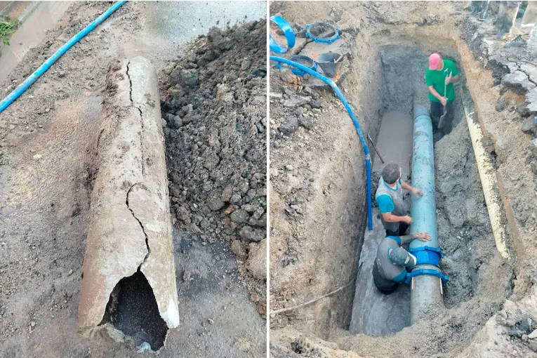 Después de una intensa jornada de trabajos, concluyó la intervención en la red de agua potable de la avenida Ramírez. Se espera que, gradualmente, el servicio vuelva a la normalidad en los barrios afectados.