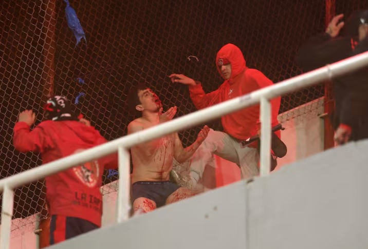 Simpatizantes visitantes arrojaron objetos pesados desde la bandeja superior a público local; luego, la barra brava del Rojo los atacó