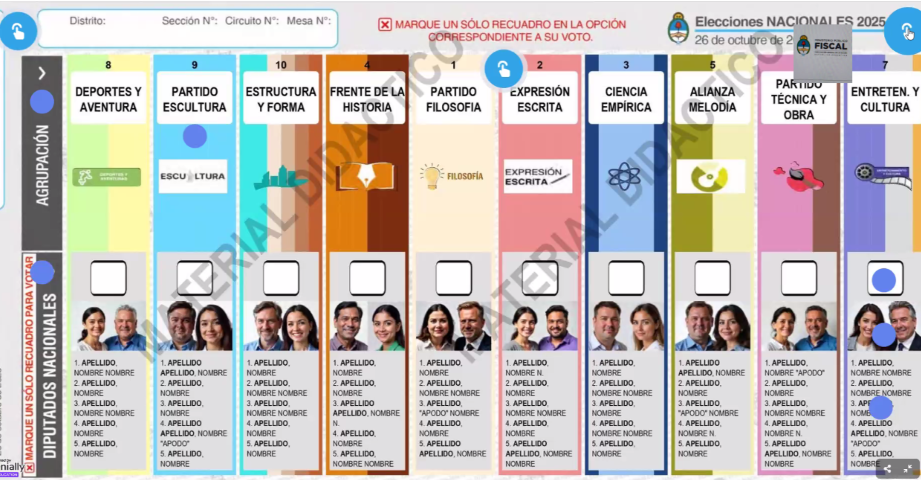 Esta modalidad agiliza, simplifica y actualiza el sistema, sustituyendo a la antigua «boleta sábana». A diferencia del clásico voto partidario, los electores encontrarán en el cuarto oscuro una única boleta. En esta ocasión, estará compuesta por siete columnas que agrupan las alianzas políticas y dos filas correspondientes a las categorías en disputa (Diputados y Senadores nacionales).
