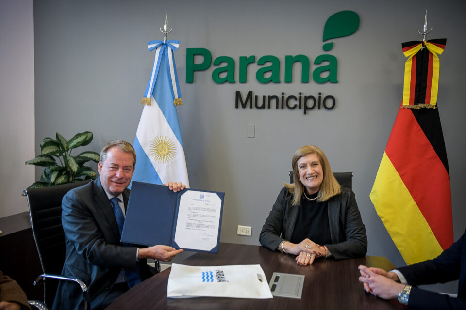 Durante el encuentro, Romero y Lamlé abordaron una agenda vinculada a la historia y el acervo cultural de la ciudad. “El embajador nos planteó hacer un intercambio vinculado al mundo del trabajo, con la producción y una agenda con sentido de futuro. La convocatoria es mirar a los jóvenes y hacer esa tarea en nuestras regiones. El esfuerzo es propiciar este encuentro entre empresas amigas de Alemania, el mundo del trabajo y producción local, con la idea de proyectar cosas en común”, explicó la intendenta de Paraná.