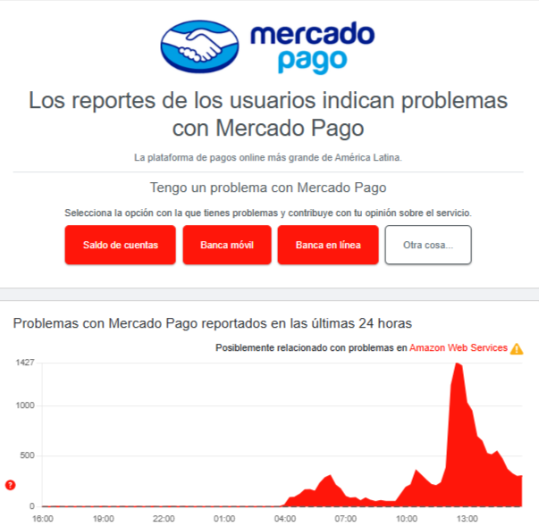 Los usuarios argentinos de billeteras virtuales como MercadoPago, Ualá y Naranja X alertaron en redes sociales que las plataformas dejaron de funcionar este lunes, tras la falla masiva registrada esta mañana en Amazon Web Services (AWS), la mayor red de servidores en la nube del mundo. En páginas web como DownDetector se acumularon los reportes de problemas para realizar transferencias de dinero o pagos.