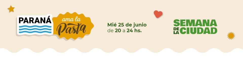 Este miércoles 25 de junio festejamos el aniversario de Paraná comiendo pasta con 50% de descuento de 20 a 24 hs. Una noche para compartir sabores, salir con amigos o familia, y disfrutar de todo lo que nuestra gastronomía tiene para ofrecer.