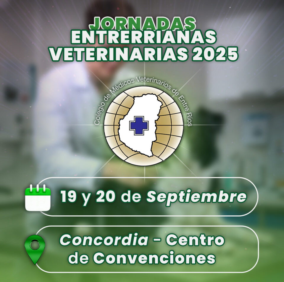 El Colegio de Médicos Veterinarios de Entre Ríos anuncia la realización de las Jornadas Entrerrianas Veterinarias 2025, un encuentro académico de alcance provincial e internacional que se desarrollará los días viernes 19 y sábado 20 de septiembre de 2025 en el Centro de Convenciones de Concordia.