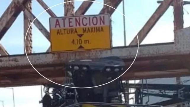 Un camión que trasladaba maquinaria agrícola chocó contra el puente de hierro en Avenida Almafuerte de Paraná. Hubo demoras en el tránsito.